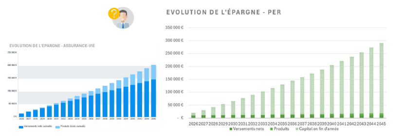 Disposant d’un capacité d’épargne de 7 000 €/an, il s’interroge, dans cette perspective, sur l’opportunité d’investir cette épargne de façon régulière dans le cadre d’un contrat d’assurance-vie ou dans contrat d’épargne-retraite PER.